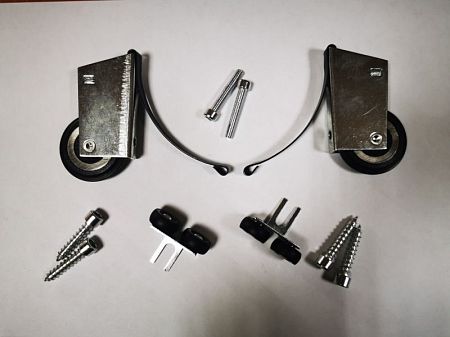 Мебельный крепеж и направляющие элементы изготавливают из металла с антикоррозионным покрытием, износостойкой резины, композитного пластика. Эти материалы обладают длительным сроком службы и устойчивостью к физическим нагрузкам. Систему фурнитуры для шкафа-купе комплектуют из следующих деталей: