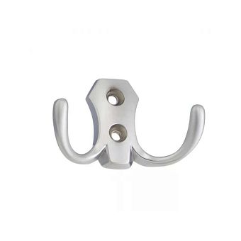 Крючок мебельный 2-х рожковый средний хром матовый