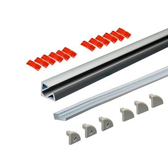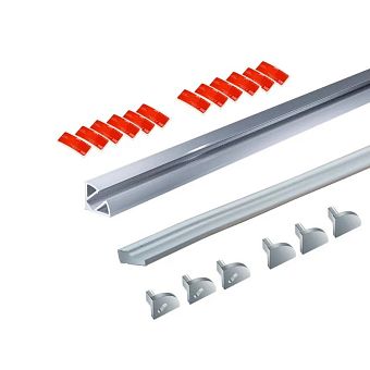 Комплект алюм. профиль УГЛОВОЙ SOLO 1212Т СЕРЕБР., 3м, 12х12мм, молочн. диффузор, 3+3 загл, скотч двустор.