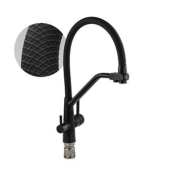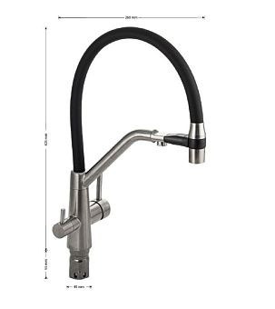 Смеситель д/кухни С-обр. гусак МАГНУС черный,с двойным выпуском воды, нерж.сталь304, арт 91118