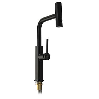 Смеситель д/кухни МАГНУС Г-образный излив вытяжной, корпус из латуни, черный