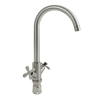 Смеситель д/кухни Г-обр. МАГНУС с краном питьевой воды. вытяжной из нерж. стали 304,САТИН, 91135