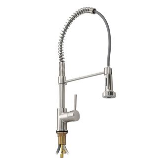 Смеситель, боковой, латунь, шаровый с гибким пружинным изливом с фиксацией