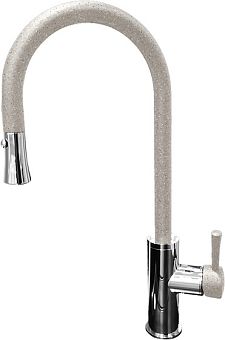 Смеситель д/кухни, боковой, шаровый, с сатеновой ручкой, с гибким изливом БЕЛОГО цвета