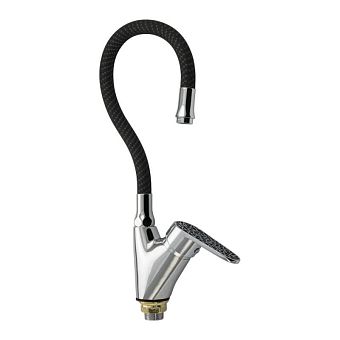 Смеситель д/кухни, боковой, шаровый с гибким изливом ЧЁРНОГО цвета ручка с черной мозайкой
