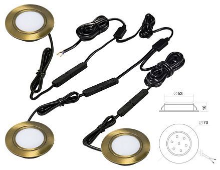 Комплект светильников встр. (LED) 3 х Polus 4Вт, 220В, 3000K, ант.бронза, провод-шлейф