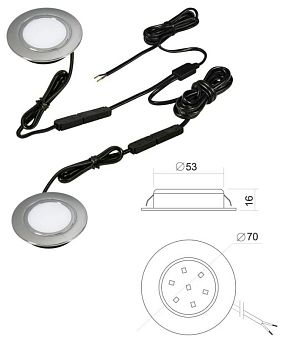 Комплект светильников встр. (LED) 2 х Polus 4Вт, 220В, 4000K, хром, провод-шлейф