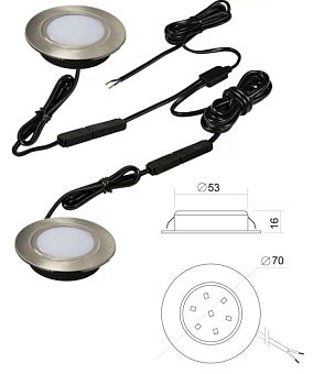 Комплект светильников встр. (LED) 2 х Polus 4Вт, 220В, 4000K, сатин никель, провод-шлейф