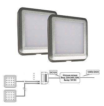 Комплект светильников накл. (LED) 2 х Palis-19 1,3Вт, DC12В, 4000К, серебро, блок пит.