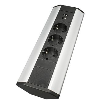 Блок розеток выдвижной круг. d60мм, 16А, 3 поста, 2USB, серебр., провод 1,8м с вилкой