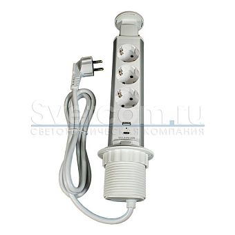 Блок розеток выдвижной прямоуг. 12А, 2 поста, 2USB, серебр., провод 1,8м с вилкой