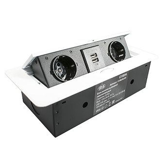 Блок розеток встр. круг. d120мм, 16А, 3 пост, бел., 1USB, 1Type-C, беспр. зарядка, провод 1,8м