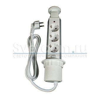 Блок розеток выдвижной круг. d60мм, 16А, 3 поста, серебр., провод 1,8м с вилкой