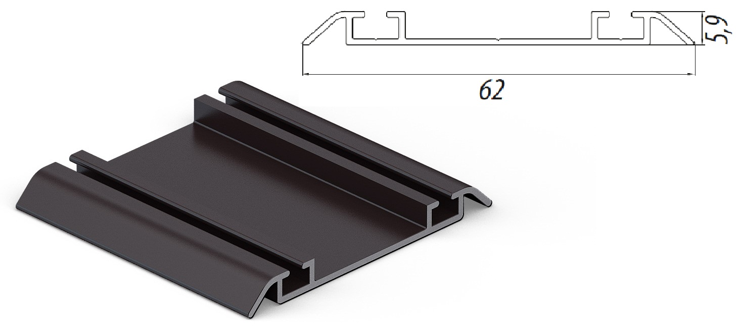 Нижний направляющий профиль для шкафа-купе. Крепится к нижней внутренней поверхности шкафа-купе. Эта деталь необходима в качестве опоры и нижней направляющей дверей.