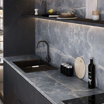 Декорированная пленка ПВХ полностью повторяет декор столешницы ДСП.