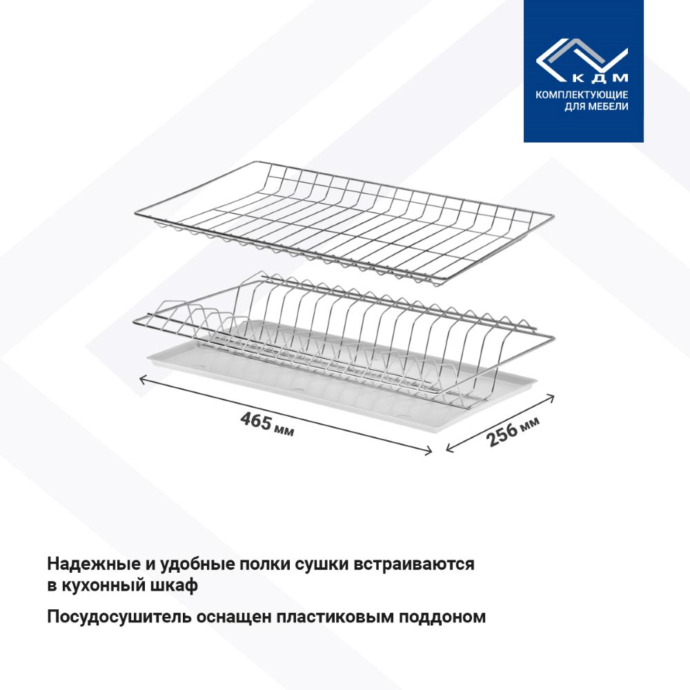 Надежные и удобные полки сушки встраиваются в кухонный шкаф. В комплекте пластиковый поддон.
