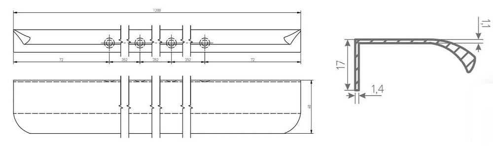 Ручка gtv крепится на 4 самореза, а межцентровое расстояние составляет 3 x 352 мм, что обеспечивает надежное и стабильное крепление.