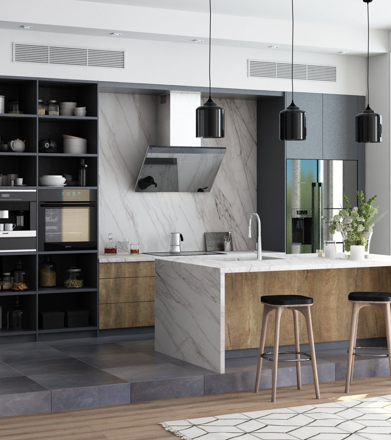 Столешница Ева 3050х600х40 9012 Мрамор Неаполь